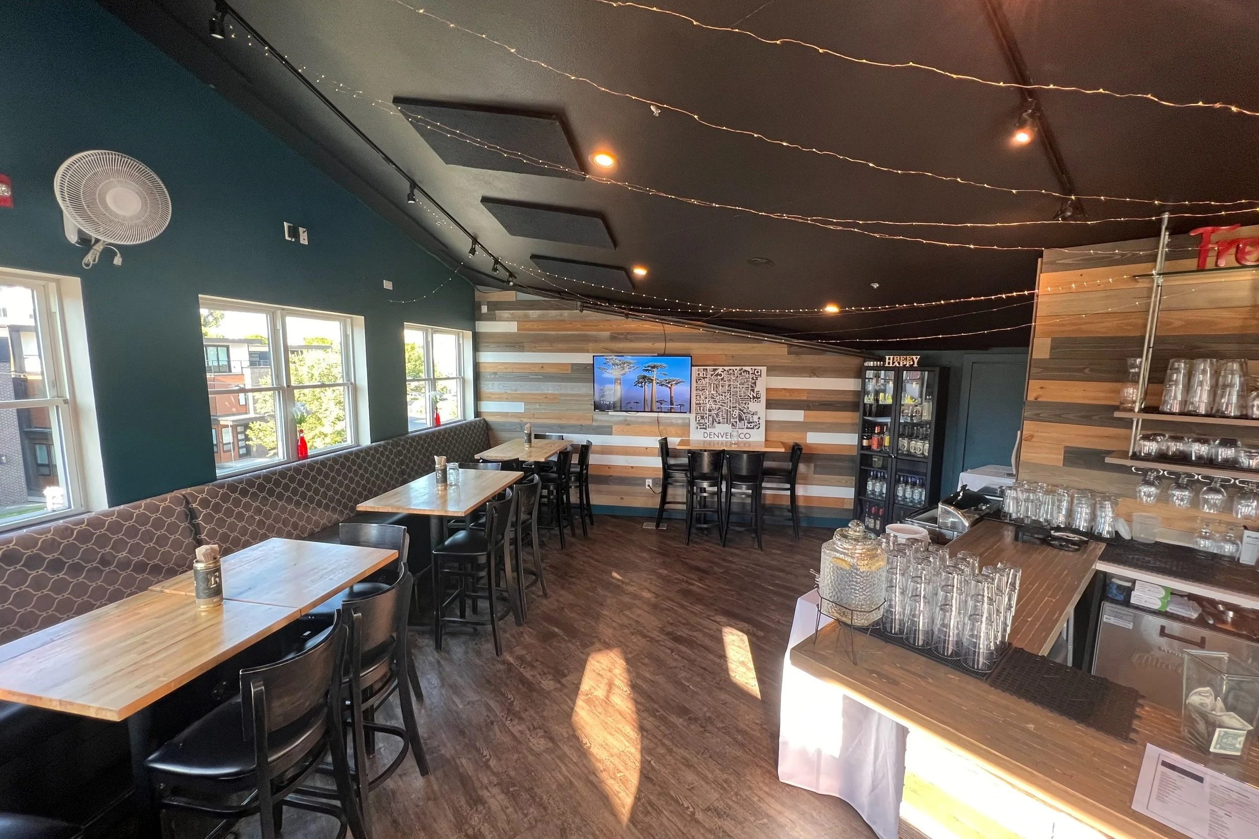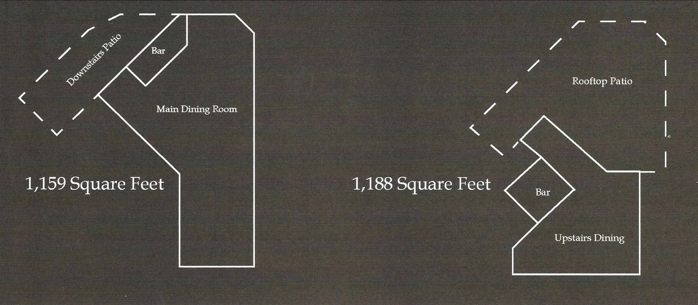 - THE SECOND-LEVEL BAR AND ROOFTOP PATIO CAN ACCOMMODATE UP TO 65 PEOPLE.